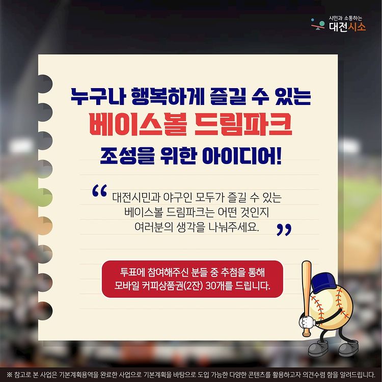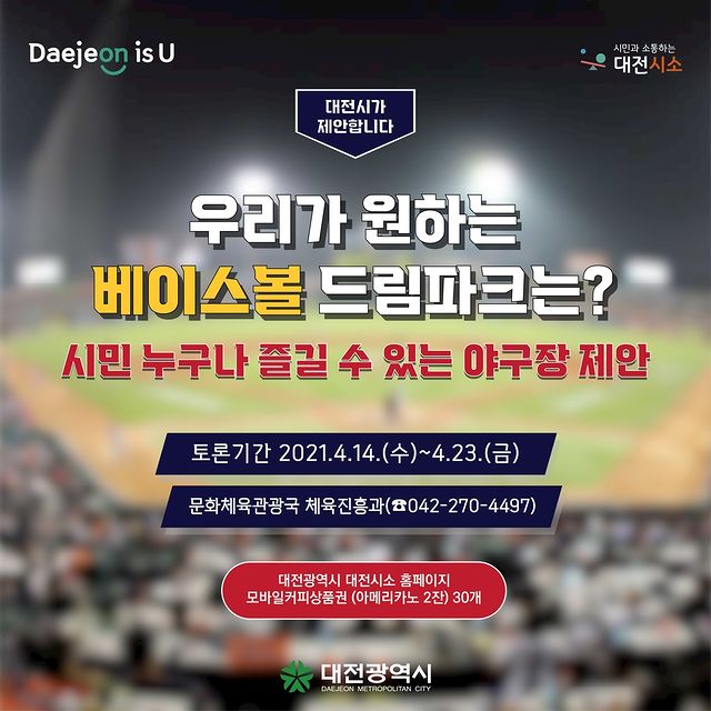2024년 완공될 대전 베이스볼 드림파크에 있었으면 하는 문화체험 시설을 제안해주세요!