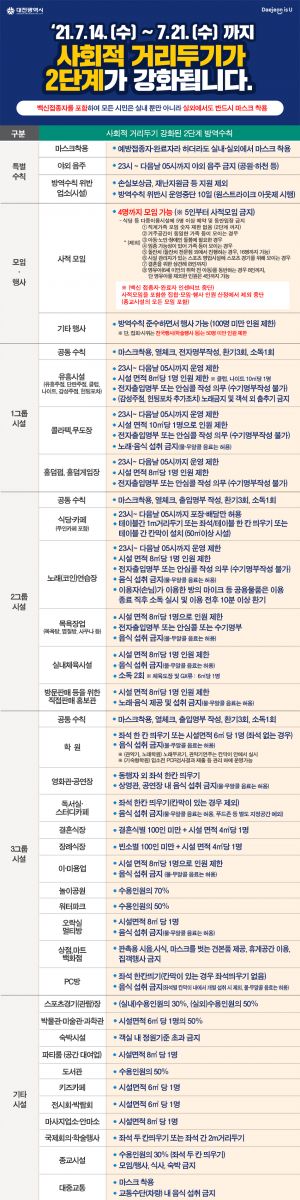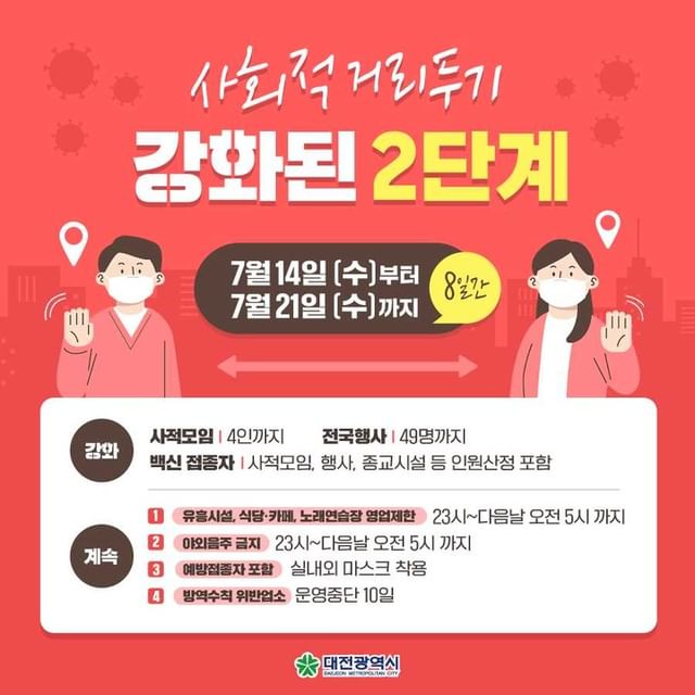사회적 거리두기 2단계가 강화됩니다.(7.14(수) 10:00~ 7.21(수))