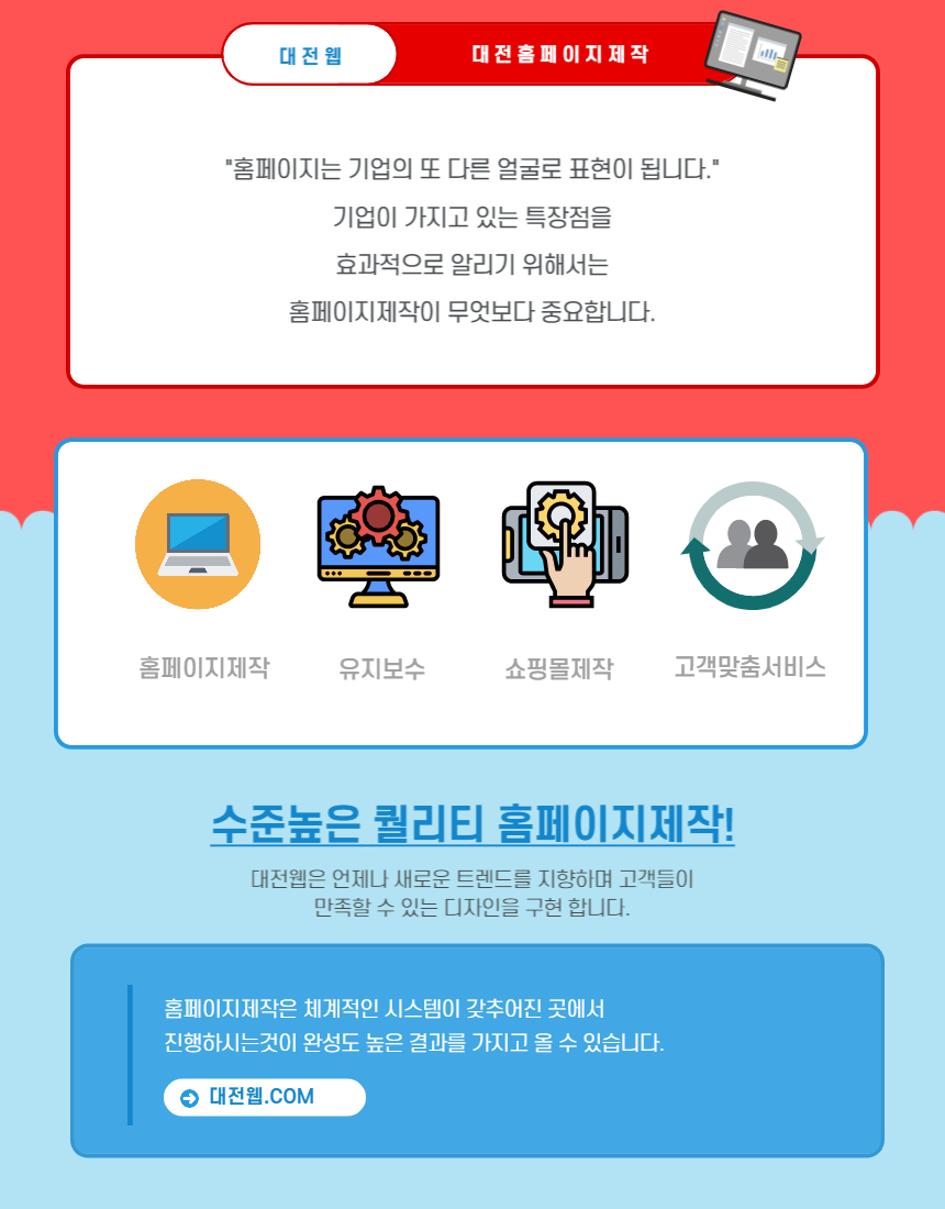 홈페이지는 전문가가 만들어야 합니다. 대전웹의 오랜 경험으로 약속합니다.