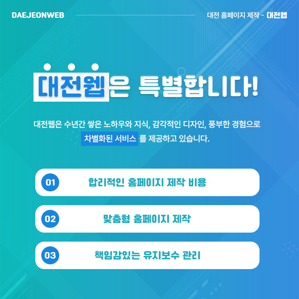 홈페이지는 전문가가 만들어야 합니다. 대전웹의 오랜 경험으로 약속합니다.