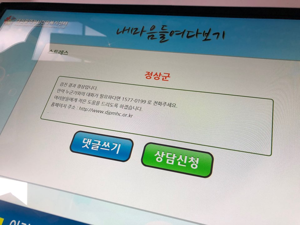 대전역 지하상가에 있는 대전광역정신건강복지센터에서 설치한 심리검사를 해봤습니다.