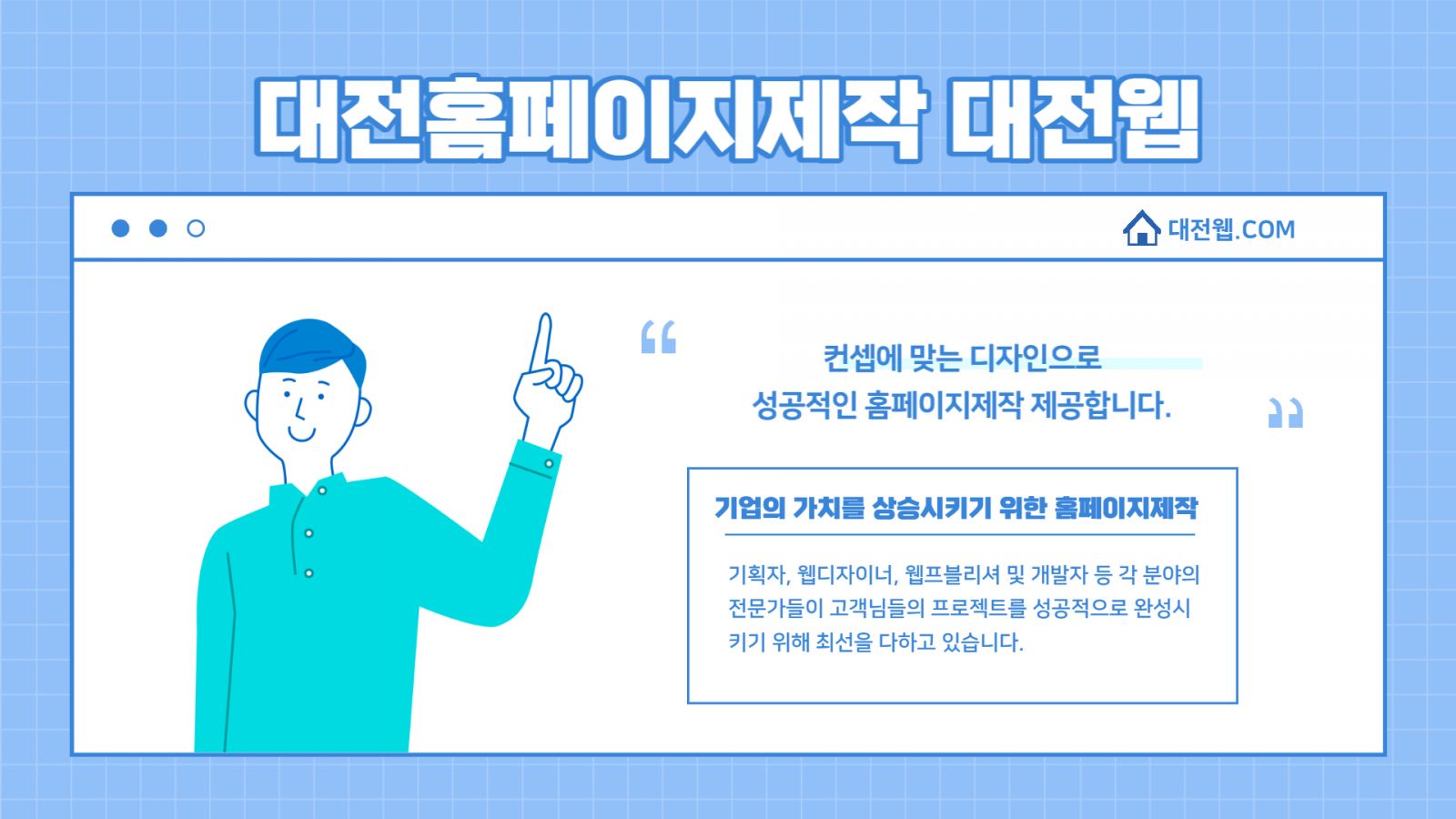 홈페이지는 전문가가 만들어야 합니다. 대전웹의 오랜 경험으로 약속합니다.